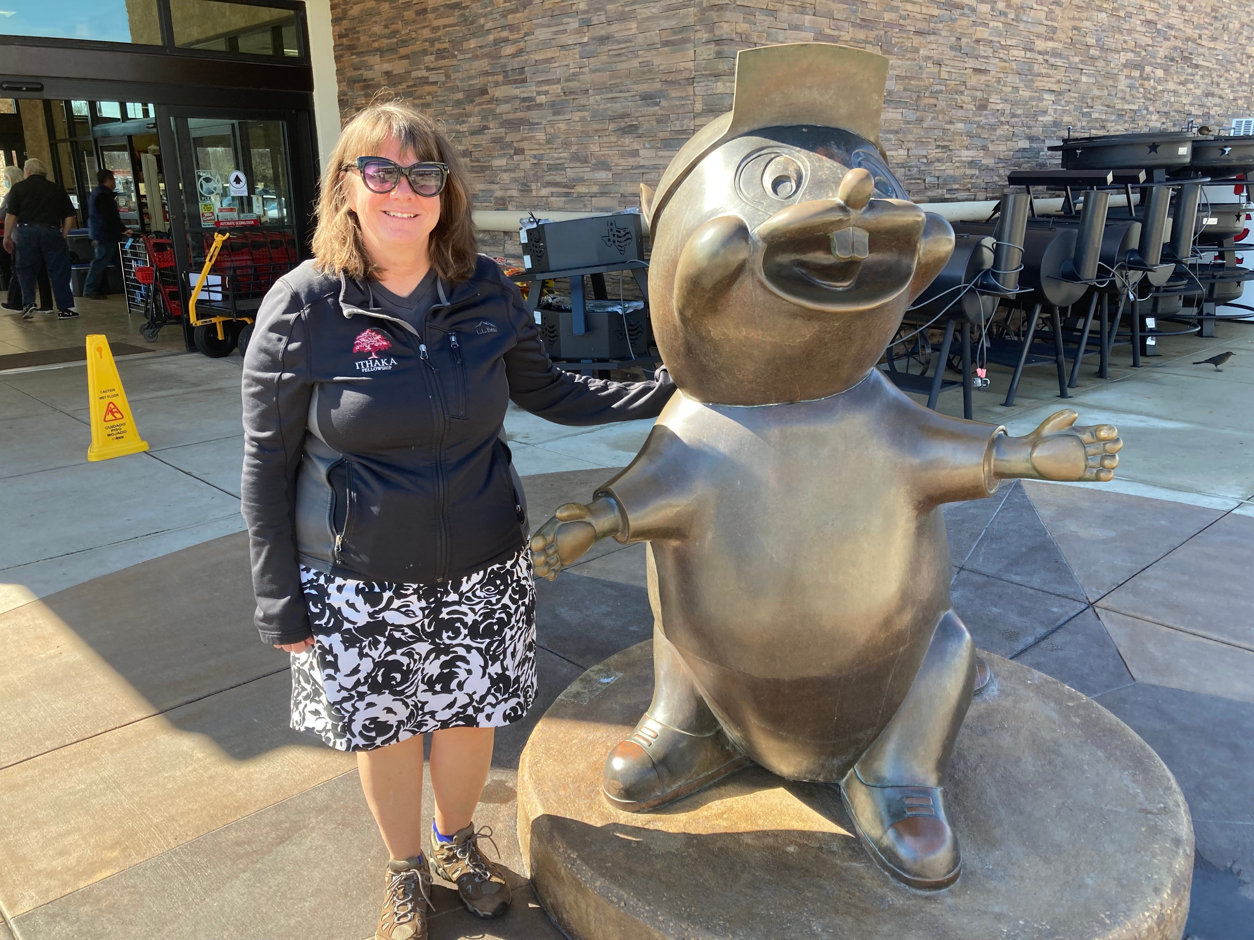 On the sidewalk a bronze Buc-ee greeted us, a sure nod to ancient history.