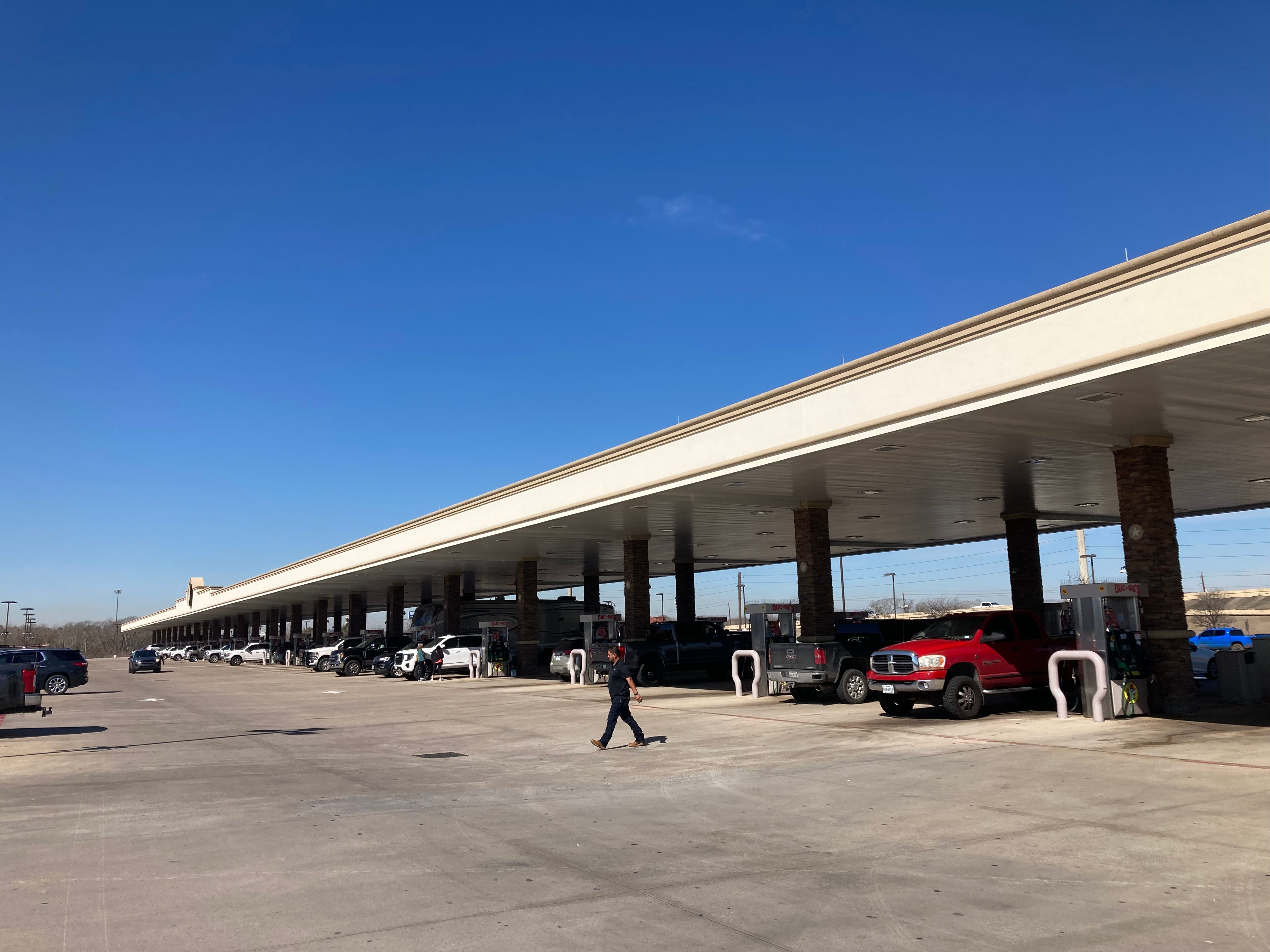 We pulled in to behold least 50 gas pumps lined up under a canopy the size of an airport arrival gate.