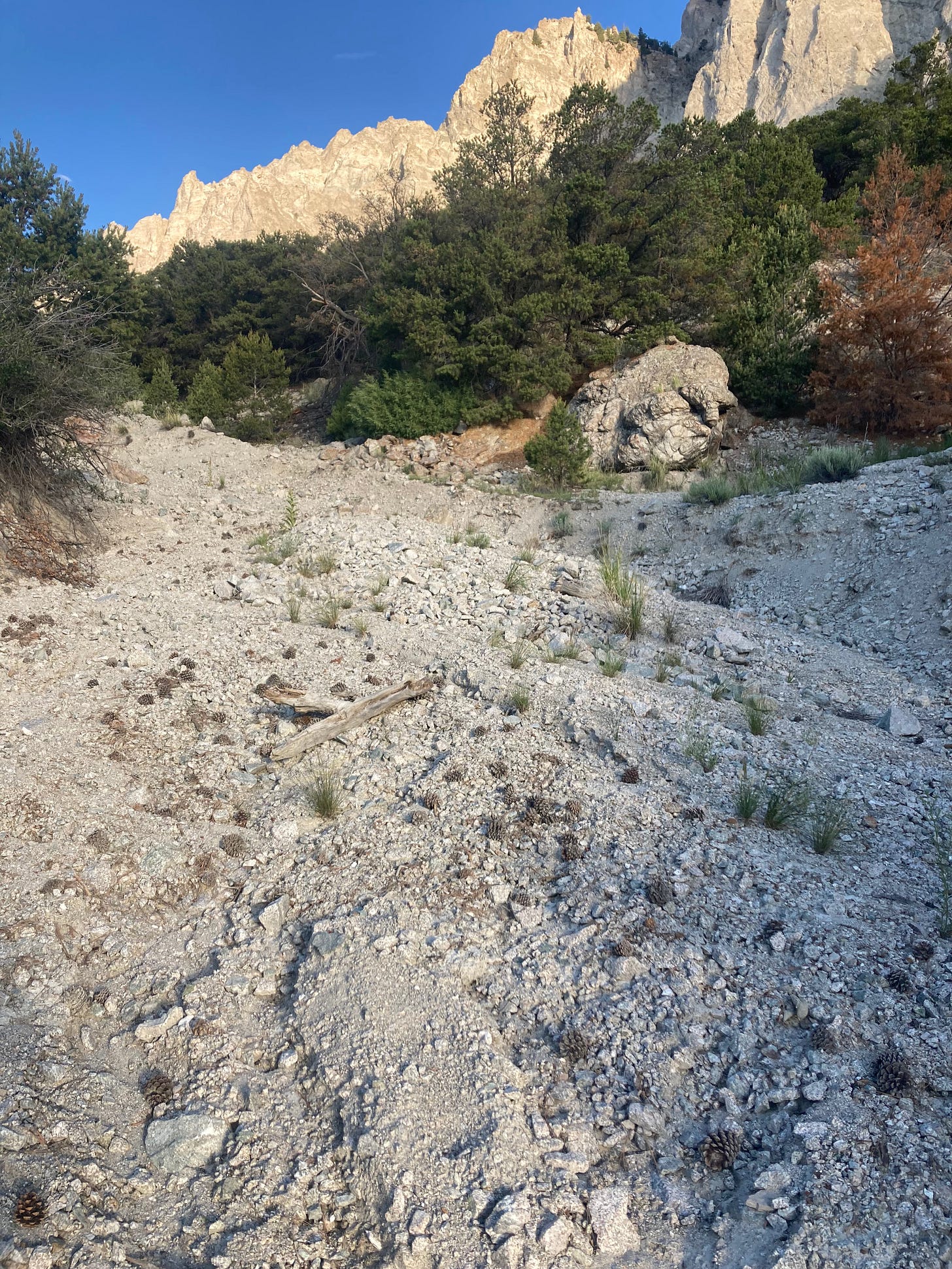 Unlike the three-toed sloth erosion of the hard granite found in the Rockies’ Front Range, this cliff is more like a prancing Big Horn Sheep. It’s off-limits to climbers. There’s simply no place strong enough to anchor lines.